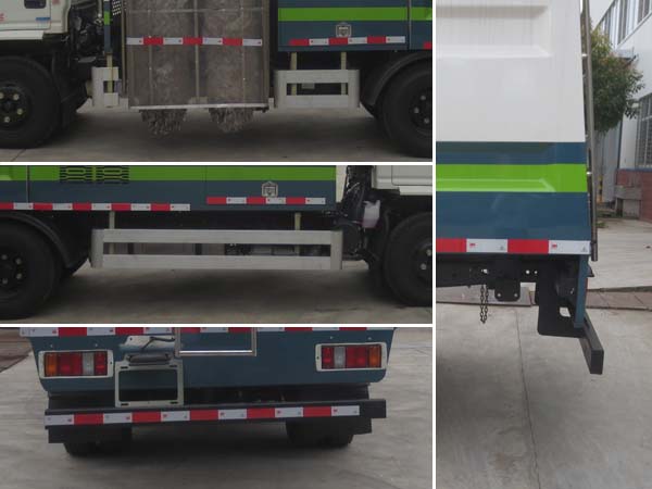 随底盘选装驾驶室;选装扫刷安装位置;ABS系统型号:VIE ABS-II,ABS系统生产厂家:浙江万安科技股份有限公司;侧面防护及后下部防护装置材料材质:Q235,连接方式:焊接加螺栓连接;后下部防护装置断面尺寸(宽赘?:50?00(mm),离地高度:450mm;主要专用装置为水箱、洗扫刷,用于清洗道路护栏. |