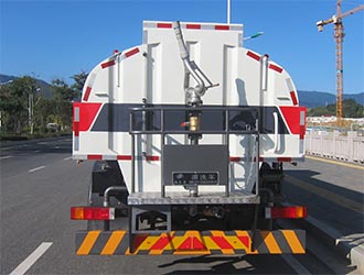 仅选用轴距4500mm;该车型3种配置:配置A标配前喷架,配置B选装A型双滚扫,配置C选装B型双滚扫;各配置整车长度(mm)/前悬(mm)对应关系:配置A:9195/2295;配置B:9895/2995;配置C:9420/2520;罐体有效容积:9.38立方米;罐体外形宽赘?mm):2300?350;罐体长度为4500mm;介质名称为:水;介质密度:1000千克/立方米;随底盘选装另一种驾驶室时整车高度为2840mm,侧防护及后部防护装置的材料材质:Q235A;连接方式为螺栓连接;后部防护装置的断面尺寸(宽赘?mm:60?30;后部防护装置的离地高度460 mm。随底盘驾驶室选装:前雾灯、前面罩、前脸扰流罩、前保险杠及前部灯具、前视镜、后视镜、侧窗装饰板、不同结构的车门裙板、上车踏板型式,驾驶室顶部中间3个装饰灯为选装件;ABS型号/生产厂家:3631010-C2000/东科克诺尔商用车制动系统(十堰)有限公司;ABS 8/东科克诺尔商用车制动系统(十堰)有限公司;可选装:①、选装后上喷雾;②、选装后下喷雾;③、选装左侧自动水炮;④、选装右侧自动水炮;⑤、选装后部作业指示灯;⑥选装单点清淤装置;⑦、选装加宽平台;⑧、选装下水道疏通装置;⑨、选装左、右侧浇花管;⑩选装右侧高压水泵;, 以上10种选装配置引起的重量及整车尺寸变化可以忽略不计。该车装备有罐体,水泵,管道系统等,用于清洗路面,对路面喷洒水降尘等作用。 |