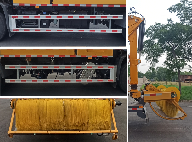 | 该车为专用作业车,专用装置为折叠臂,水平支撑座,箱体总成和清洗刷等,后防护与专用装置清洗刷存在功能性干涉,后防护由专用装置替代,专用装置离地高度470mm;该车仅选装轴距4500mm,随底盘选装驾驶室外观;选装护栏清洗机或者两种操作室;基本车型:护栏清洗机+A型操作室,前伸2870mm,整车尺寸11700?500?600mm,整备质量12500kg; 选装1:护栏清洗机+B型操作室,前伸2870mm,整车尺寸11700?500?300mm,整备质量12500kg;选装2:仅选装A型操作室,前伸200mm,整车尺寸9030?500?600mm,整备质量12100kg;选装3:仅选装B型操作室,前伸200mm,整车尺寸9030?500?300mm,整备质量12100kg;发动机D6.7NS6B230对应的净功率为166kw;ABS型号:ABS 8,生产厂家:东科克诺尔商用车制动系统(十堰)有限公司。 |
