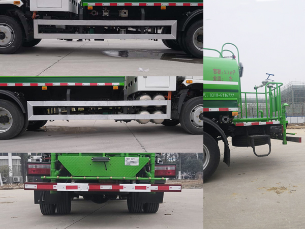 | 该车选用底盘4200mm轴距.该车型有3种配置:A(车前有全自动水炮装置),B(车前无全自动水炮装置),C(臂架式自动喷射装置);配置A时,前伸为400mm,整车长为7660mm,接近角为13?配置B和C时,整车长为7260mm,接近角为28?罐体有效容积:5.3立方米,罐体外形尺寸(长壮ぶ嶙短轴)(mm):3400?700?100,运输介质:水,密度1000千克/立方米;侧面防护装置的材料为铝合金,连接方式为螺栓连接;后部防护装置的材料为Q235A,连接方式为焊接,后部防护装置的断面尺寸(宽赘?mm:50?00,离地高490mm;电池种类/生产企业:磷酸铁锂电池/宁德时代新能源科技股份有限公司;驱动电机类型为永磁同步电机,型号为TZ380XSTY842,额定功率为80kW,峰值功率为160kW,生产企业为武汉理工通宇新源动力有限公司;电机控制器型号为KTZ54X36STY60,生产企业为武汉理工通宇新源动力有限公司;产品技术阶段为发展期,可在全国销售;ABS系统生产厂家/型号:广州瑞立科密汽车电子股份有限公司/CM4XL-4S/4M;该车专用装置为清洗装置,用于路面清洗,洒水降尘等作业. |