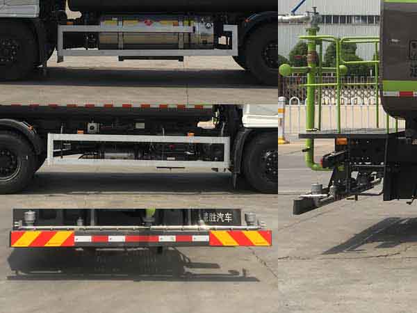1、前伸530mm,选装正前无自动水炮,选装无自动水炮时无前伸。罐体有效容积 10.05立方米,罐体外形尺寸(长卓碜高)(mm): 4620?250?360。专用装置喷洒总成,专用功能为道路洒水、冲洗作业。选装后箭头指示灯。2、侧防护材料为铝合金,螺栓连接;后防护材料为Q235,螺栓连接,截面尺寸140?0mm,下边缘离地高380mm。3、选用4500mm轴距底盘。随底盘选装前脸。ABS型号:VIE ABS-Ⅱ,ABS生产企业:浙江万安科技股份有限公司。 |