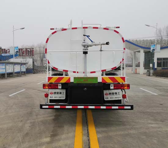 加装罐体及清洗装置,用于清理路面或管道沉积物或清洗机械表面;罐体有效容积为10.8立方米,罐体尺寸(长壮ぶ嶙短轴)(mm):4900?340?340;仅采用轴距为:4500mm.随底盘选装前围和灯具,选装宽体保险杠,脚踏板,选装前置高压冲洗装置,选装前置万向喷嘴,选装箭头灯,选装后封头款式,选装外观喷涂;侧后防护装置材料均为:Q235,侧防护装置与车架连接方式为螺栓连接,后防护装置与车架连接方式为焊接,后防护装置截面尺寸为:120?8mm,离地高度500mm;ABS系统生产厂家:长春瑞立科密汽车电子有限公司,型号:CM4XL. |