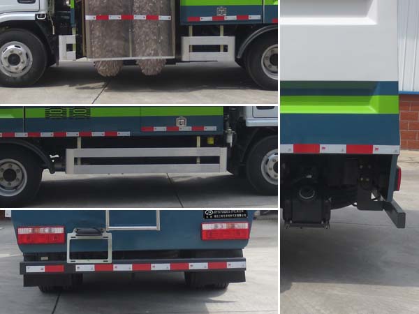 随底盘选装驾驶室;选装扫刷安装位置;仅采用底盘3308mm轴距;ABS型号/厂家:ABS/ASR-12V-4S/4M/襄阳东风隆诚机械有限责任公司;侧面防护及后下部防护装置材料材质:Q235,连接方式:焊接加螺栓连接;后下部防护装置断面尺寸(宽赘?:50?00(mm),离地高度:440mm;主要专用装置为水箱、洗扫刷,用于清洗道路护栏. |