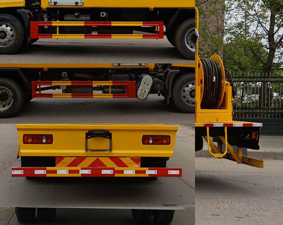 随底盘选装驾驶室,选装后部带围栏结构;前悬/轴距/后悬对应关系(mm):1430/4700/2250,1400/4700/2280,1430/4500/2450,1400/4500/2480;运输介质:水,密度:1000千克/立方米,罐体有效容积:9.45立方米,罐体外形尺寸(长壮ぶ嶙短轴)(mm)5000(前部1200为高压泵箱)?300?600;侧防护材料Q235,螺栓连接,后防护材料Q235,焊接连接;后防护截面高度尺寸120mm,截面宽度尺寸50mm,下边缘离地高度430mm;ABS型号/生产厂家:3631010-C2000/东科克诺尔商用车制动系统(十堰)有限公司,ABS 8/东科克诺尔商用车制动系统(十堰)有限公司,4460046450/威伯科汽车控制系统(中国)有限公司;该车专用装置主要为罐体和清洗泵,用于清洗城市下水道、管道的沉积物、死角泥沟的疏通,也可用于清洗管道和地面. |