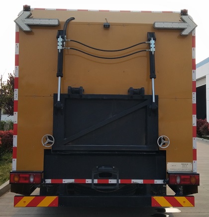 | 该车专用装置为高压水清除装置,主要用于城市道路交通标线的清除;仅选用4200mm轴距底盘;罐体有效容积3.55立方米,罐体外形尺寸(长卓碜高)(mm):2405X920X1980,装运介质为水,介质密度为1000千克/立方米;两种车身长度的对应关系如下:1、车头不选装前端工作装置时,前伸495mm,对应车长8605mm;2、车头选装前端工作装置时,前伸2090mm,对应车长10200mm; 防护材料:左右侧面采用螺栓连接,材质为Q235A碳钢,后下部防护采用焊接连接,材质为Q345B碳钢,后部防护断面尺寸(mm):140X60,后部防护离地高度(mm):485. ABS控制器型号/生产企业:ABS 8/东科克诺尔商用车制动系统(十堰)有限公司,4460046450/威伯科汽车控制系统(中国)有限公司,3631010-C2000/东科克诺尔商用车制动系统(十堰)有限公司; |