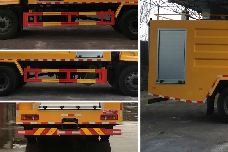 装备水泵、管道系统等设施,用于清理路面、管道沉积物或清洗物体.随底盘选装选装前雾灯;选装驾驶室顶部装饰灯;选装驾驶室前面罩;选装前保险杠及前部灯具,前脸扰流罩.选装无后仓结构.选用1896,1920,1950mm前轮距.侧后防护采用Q235材质焊接连接,后部防护断面尺寸(mm):50?20,后部防护离地高度(mm):500.ABS型号/生产厂家:3631010-C2000/东科克诺尔商用车制动系统(十堰)有限公司,ABS 8/东科克诺尔商用车制动系统(十堰)有限公司, 4460046450/威伯科汽车控制系统(中国)有限公司. |