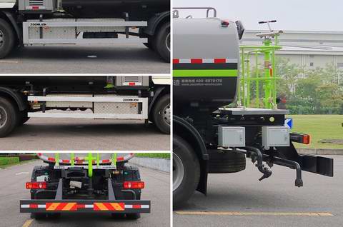 该车配有水罐,水路和控制系统等,用于清洗作业,该车选用底盘4500mm轴距;罐体有效容积9.15立方米,罐体外形尺寸(长轴锥讨嶙长度)(mm):2240?290?000,配置喷水架时,前伸为860mm,整车长为9050mm;接近角8?离去角12?配置车前无专用装置时,整车长为8190mm,接近角12?离去角12?配置前左(右)自动水炮时,前伸为825mm,整车长为9015mm;接近角12?离去角12?侧面防护装置的材料为铝合金,连接方式为螺栓连接;后部防护装置的材料为Q345A,连接方式为螺栓连接,断面尺寸为240?5毫米,离地高度为480毫米.该车可选装鸭嘴,对冲,上绿化浇灌,高压清洗系统,小型喷洒系统,自吸,后部洒水架(保洁型),后部洒水架(浇灌型),卷盘,后作业平台,上下喷雾,左右绿化浇灌,后作业指示灯,后回水管路,该系列选装对于整车尺寸,重量变化可忽略不计;该车技术阶段为"发展期",可在全国销售,电池种类/生产企业:磷酸铁锂电池/宁德时代新能源科技股份有限公司.电机种类/电机型号/电机生产企业/电机控制器型号/电机控制器生产企业/电机额定功率/电机峰值功率:永磁同步电机/TZ370XS-LKM1101/苏州绿控传动科技有限公司/KTZ54X45S-LKC1101/苏州绿控传动科技有限公司/80kw/160kw;随底盘装有ABS,ABS型号/企业:ABS-E 4S/4M/威伯科汽车控制系统(中国)有限公司. |