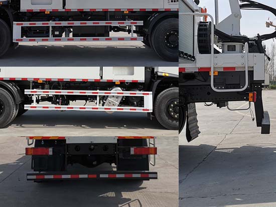 1、车辆主要专用装置有墙面清洗装置等组成,用于高架桥桥身、城市道路中间护栏、城市高速路隔音墙、隧道墙面等清洗的专用车辆;2、侧后下部防护装置材料均为Q235B,与车辆连接方式均螺栓连接,后下部防护装置断面尺寸(mm)120?10,离地高度为:460mm;3、装有ABS,型号/生产厂家:3631010-C2000/东科克诺尔商用车制动系统(十堰)有限公司,ABS 8/东科克诺尔商用车制动系统(十堰)有限公司,4460046450/威伯科汽车控制系统(中国)有限公司;4、仅选用4500mm轴距;选装前装前挂板时,前伸量为200mm,随底盘选装驾驶室. |
