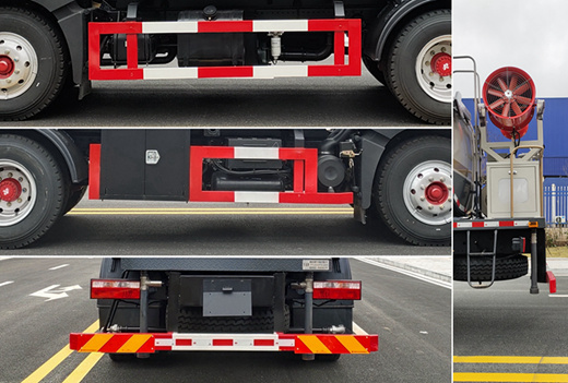 该车仅选用3950mm底盘轴距;该车运输介质为水,密度:1000千克/立方米,罐体有效容积为11.5立方米,水厢尺寸(长壮ぶ嶙短轴)(mm):4500?350?350.专用装置为清洗机和泵.用途:道路冲洗,园林绿化,人行道,路沿,道路标线的清洗等.ABS型号/生产厂家:J ABS/焦作博瑞克控制技术有限公司.侧后防护装置与车架采用螺栓连接形式,均为Q235材质;后防:离地高度为410mm,断面为120mm?0mm。选装不带前冲压嘴、选装后两侧高位花洒、选装不带后鸭嘴对冲、选装带后上喷雾杆、选装前置自动水炮、选装不带后平台冲水卷盘、选装不带后喷雾机;其中带前冲压嘴时前伸为180mm,带前置自动水炮时前伸为590mm;选装不带前冲压嘴时全车长-前后悬对应关系为7660-1260/2450(mm);标配带前冲压嘴时全车长-前后悬-前伸对应关系为7840-1260/2450-180(mm);选装前置自动水炮时全车长-前后悬-前伸对应关系为8250-1260/2450-590(mm);随底盘选装驾驶室。 |