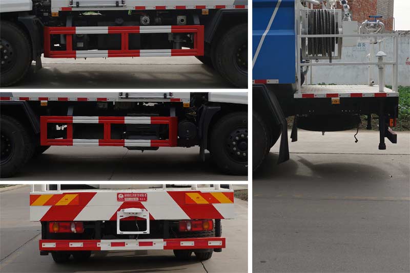 随底盘选装驾驶室.选用3800,3950mm轴距.选装无后护栏.选装清洗卷盘.罐体有效容积为:8.4立方米,罐体截面为多边形及圆弧组成,长卓碜高(mm):2500?300?450,介质:水.侧后防护采用Q235材质焊接连接,后部防护断面尺寸(mm):50?20,后部防护离地高度(mm):500.ABS型号/生产厂家:3631010-C2000/东科克诺尔商用车制动系统(十堰)有限公司,ABS 8/东科克诺尔商用车制动系统(十堰)有限公司, 4460046450/威伯科汽车控制系统(中国)有限公司.该车用于管道疏通、路面冲洗等;主要装置为管道疏通设备、喷洗装置等. |