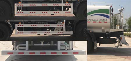 选用轴距4350mm+1350mm底盘.专用装置为水罐体、清洗装置,主要用于道路清洗作业.罐体有效容积14.4立方米,罐体外形尺寸(长轴锥讨嶙长度)(mm): 2400?420?200.选装自动水炮,当安装自动水炮时,整车长9970mm,前伸320mm,接近角11?不安装自动水炮时整车长9650mm,接近角12?另可选装两侧管箱,选装鸭嘴、对冲、高压清洗系统、便携水泵等装置, 选装后作业指示灯,选装后部清洗装置,选装后防护和平台护栏喷涂颜色.侧面防护装置材料:Q235,连接方式:螺栓连接;后部防护装置材料:Q235,连接方式: 螺栓连接,截面尺寸120mmX80mm,离地高度460mm. ABS厂家/型号:东科克诺尔商用车制动系统(十堰)有限公司/3631010-C2000. |