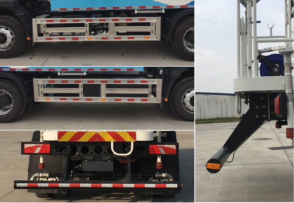 1.罐体有效容积7.35立方米,罐体外形尺寸(长卓碜高)(mm):4505?300?350,介质名称:水,介质密度:1000千克/立方米;2.选装前喷装置,安装前喷装置时整备质量10830kg,整车长8990mm,前伸为860mm,接近角为9?选装铝制轮辋、黑底LOGO、侧防护、前防护;3.侧面防护装置材料为5052-H32,与车辆采用螺栓连接;后下部防护装置材料为Q235无缝钢管,与车辆采用螺栓连接,断面尺寸:φ120mm,离地高度为450mm;4.动力蓄电池种类:磷酸铁锂蓄电池,生产企业:深圳市比亚迪锂电池有限公司(单体),汕尾比亚迪汽车有限公司(总成);5.驱动电机类型:永磁同步电动机,额定功率150kW,峰值功率180kW,生产企业:长沙市比亚迪汽车有限公司;6.ABS系统生产企业:威伯科汽车控制系统(中国)有限公司,ABS系统型号:ABS-E;7.电池布置位置:车辆底部;8.可在全国销售;9.安装具有卫星定位功能的行驶记录仪.10.该车装备有罐体、水泵、管道系统等,用于清洗路面,对路面喷洒水降尘等作用. |