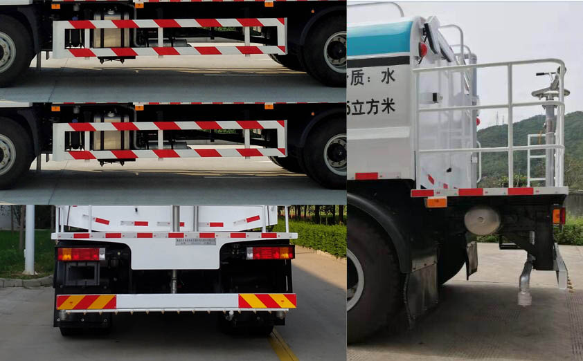 1.该车仅在底盘轴距为5000(mm)上改装;2.该车装有水罐,水路系统,清洗工作装置,作业平台,控制系统,用于清洗作业.3.车辆配置前喷淋装置时,外形尺寸长9060mm,前伸990mm,接近角(?为7;选装车头无喷淋装置时,外形尺寸长8070mm,接近角(?为23.4.随底盘选装驾驶室前保险杠,前脸外观;选装驾驶室两侧喷涂"X6"字样及图案.5.运输介质:水,密度:1000千克/立方米,罐体有效容积:9.5立方米.该罐体为方圆罐,罐体外形尺寸(长壮ぶ嶙短轴)(mm):3650?370?500.6.该车防护材料材质均为Q235,连接方式均为螺栓连接,后防护离地高460mm,断面尺寸120?0mm.7.安装具有卫星定位功能的行驶记录仪.8.ABS系统生产厂家:西安正昌电子股份有限公司,型号:ZQFB-V. |