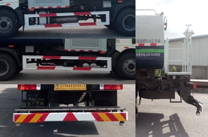 罐体有效容积9.61立方米,罐体外形尺寸(长x长轴x短轴)(mm):3600x2400x1480,介质:水,密度:1000千克/立方米.前部无喷水架时,整车长度8335mm;前部有喷水架时,整车长度9145mm,其中前伸量为810mm.侧防护材料为Q235,连接方式为螺栓连接;后防护材料为Q235,连接方式为螺栓连接,后防护截面尺寸(mm):140x50,后防护离地高度(mm):480.专用装置有罐体,水泵,喷水架,管路系统等,主要用于路面清洗等作用.ABS系统型号CM4XL,ABS系统生产厂家:长春瑞立科密汽车电子有限公司.安装具有卫星定位功能的行驶记录仪.随底盘选装前围和灯具,选装宽体保险杠,脚踏板. |