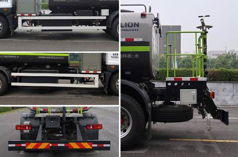 该车选用底盘5300mm轴距,该车装有水罐、水路系统、清洗工作装置、控制系统,用于清洗作业;罐体外形尺寸(长轴锥讨嶙长度)(mm):2230?280?800.罐体有效容积8.35立方米;配置前喷水架时,前伸955mm,整车长9470m;配置基本型时,整车长8515m;该车可选装前左(右)自动水炮、后自动水炮、鸭嘴、对冲、后部洒水架保洁型、后部洒水 架浇灌型、卷盘、左(右)绿化浇灌、后作业箭头灯、上下喷雾、上绿化浇灌,该系列选装对于整车尺寸、重量变化可忽略不计;侧防护装置材料为铝合金,连接方式为螺栓连接;后防护装置材料为Q345A,与车辆连接方式为螺栓连接;后部防护装置的断面尺寸为240?5mm,离地高度为470mm;该车技术阶段为"发展期",可在全国销售,储能种类类型/生产厂家:磷酸铁锂蓄电池/宁德时代新能源科技股份有限公司;电机额定功率:100kW;电机峰值功率:185kW.随底盘选装驾驶室外观;随底盘装配ABS,ABS系统生产厂家,型号 :焦作博瑞克控制技术有限公司,J ABS. |