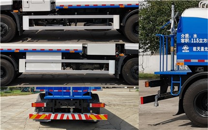该车具有前伸1000mm.1.罐体有效容积:11.5立方米,罐体外形尺寸(mm)(长轴锥讨嶙直线段):2304?380?900(直线段).罐体总长4945mm;装运介质:水;密度:1000kg/m3.2.该车具有两种配置:A具有前喷架,B无前喷架.配置A时,整车长度为10350mm,具有前伸1000mm,接近角为9?配置B时,整车长度为9350mm,接近角为14?3. 随底盘选装驾驶室顶部中间三个装饰品.4.该车配置ABS,ABS型号/生产企业:J ABS/焦作博瑞克控制技术有限公司.5.该车技术阶段为发展期,可全国销售,:电池种类/生产企业:磷酸铁锂电池/宁德时代新能源科技股份有限公司.6.侧防材料:铝合金,连接方式:螺栓连接,后防材料:Q235-B,连接方式:螺栓连接,后防截面尺寸:160?0(mm),离地高度:480mm.该车主要由液罐,高压水泵,管路冲洗系统等结构组成,主要用于清洗路面功能. |