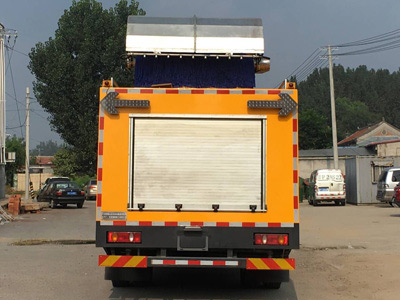 | 作业装置由工作臂,滚刷,液压系统,水罐及管路构成的隧道清洗装置。罐体有效容积6.2立方米,罐体长度为2450mm,长轴2340mm,短轴1380mm。运输介质:水,侧防护使用材质为Q235A,采用焊接方式连接,后防护使用材质为Q235A,采用焊接方式连接,后防护断面尺寸为120mm?0mm,后防护离地高度470mm 。样车仅用4700mm轴距。该车装配有卫星定位功能的行驶记录仪 ,ABS型号:3631010-C2000,4460046440;生产厂家:东科克诺尔商用车制动系统(十堰)有限公司,威伯科汽车控制系统(中国)有限公司。 |