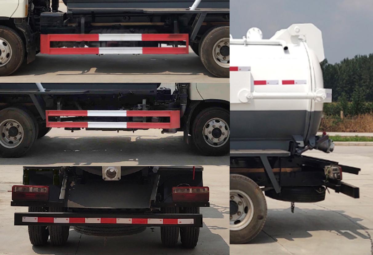 | 该车主要用于下水道排污及疏通,主要装置为罐体和泵.罐体有效容积:4.12立方米,介质:液态污物, 密度:800千克/立方米,罐体外形尺寸(直段长字本?(mm): 3200?300.侧后防护采用Q235材质焊接连接,后部防护断面尺寸(mm):50?20,后部防护离地高度(mm):450. ABS型号为CM4XL-4S/4M,生产厂家为广州瑞立科密汽车电子股份有限公司.随底盘选装前围.选装后部灯具. |
