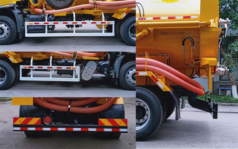 | 1、该车专用装置是:BT125AV罗茨真空泵,专用装置用于吸污作业。2、介质:悬浮污物,密度:0.9吨/立方米,罐体有效容积:9.026立方米,筒体长:3045mm,直径:φ1800mm,壁厚:6mm。3、该车罐体后部选装进口球阀结构时整车长度为7880mm,后悬为1980mm。4、选装国产球阀结构时整车长度为7810mm,后悬为1910mm。5、选装吸污罐体内过滤网装置,整备质量为9955kg,额定载质量为7850kg。6、侧面及后下部防护装置,所用材料材质:Q235,连接方式:螺栓连接,后部防护装置的主要尺寸参数,断面尺寸:140?0mm,离地高度:480mm。7、该车仅采用4500mm轴距的底盘进行改装。8、该车型罐体上部选装升降照明灯,满量提示灯,罐体后部选装箭头作业指示灯,倒车雷达,倒车影像及后部结构。9、ABS型号/生产厂家:3631010-C2000/东科克诺尔商用车制动系统(十堰)有限公司,ABS 8/东科克诺尔商用车制动系统(十堰)有限公司, 4460046450/威伯科汽车控制系统(中国)有限公司。10、选装发动机D6.7NS6B230,B6.2NS6B210,B6.2NS6B230,DDi50E190-60,D4.5NS6B190发动机最大净功率分别为166kW,151kW,166kW,143kW,135kW. |