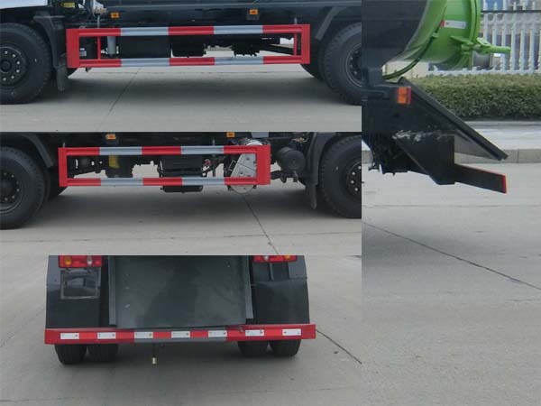 选装驾驶室前脸局部造型变化,选装遮阳板。介质:液态污物,密度:800千克/立方米,罐体有效容积11.4立方米,罐体尺寸为(直段长字本?(mm):4000?800,4700?800。侧/后防护材料为Q235,侧防护为螺栓连接,后防护为焊接连接,后防护截面尺寸120?0mm,下边缘离地高460mm。ABS生产厂家;东科克诺尔商用车制动系统(十堰)有限公司, 浙江万安科技股份有限公司,型号:3631010-C2000, VIE ABS-Ⅱ。采用3950mm,4500mm轴距底盘,车辆长/轴距/前悬/后悬对应关系为:8160/4500/1475/2185,8160/4500/1515/2145,7610/3950/1475/2185,7610/3950/1515/2145。额定载质量和整备质量及驾驶室准乘人数一一对应。该车用途为吸污,主要专用装置为罐体真空泵,用于吸污作业。选装外观。 |