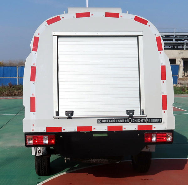 该车前部悬挂安装有喷洒架用于路面养护,专用功能为路面清洗养护作业;前伸为490mm.随底盘选装部件:空调,电动门窗,中控锁,MP5,倒车可视,轮辋样式,轮胎螺栓样式,可不选装前雾灯;ABS控制系统型号/生产企业/控制方式:YF8/武汉元丰汽车电控系统有限公司/四通道式.选装厢体外观.选装加水口位置、散热孔,选装箱内增加加热装置,选装散热仓大小. |