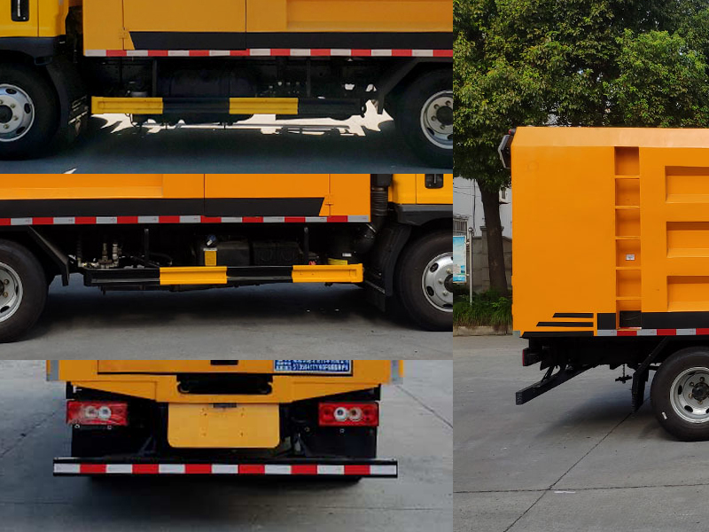 ABS型号:CM4XL-4S/4M;ABS生产企业:广州瑞立科密汽车电子股份有限公司;发动机净功率值:发动机WP2.3NQ130E61的净功率为92kW;选装部件名称及其相关描述:随底盘选装驾驶室,导流罩为选装件;所用材料材质、连接方式以及后部防护装置的主要尺寸参数(断面尺寸和离地高度):侧后防护材料:Q235,侧防护螺栓连接,后防护焊接连接,后防护断面尺寸(mm):100?0,后部防护离地高度(mm):350;专用功能及装置描述:该车为路面养护专用作业车,主要专用装置为高压水路系统,自动卷盘,喷枪; |