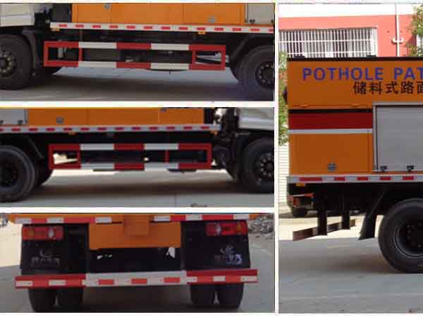 随底盘选装驾驶室.整车长/轴距对应关系为(mm):7160/3800,7560/4200,7860/4500,8060/4700,8360/5000,8960/5600.防护材料:Q235A碳钢,连接方式:左右侧面及后下部防护均采用焊接连接,后部防护断面尺寸(mm):120?0,后部防护离地高度(mm):450.专用装置:混合料保温箱;该车用于路面养护.ABS型号:3631010-C2000,4460046440;生产厂家:东科克诺尔商用车制动系统(十堰)有限公司,威伯科汽车控制系统(中国)有限公司. |