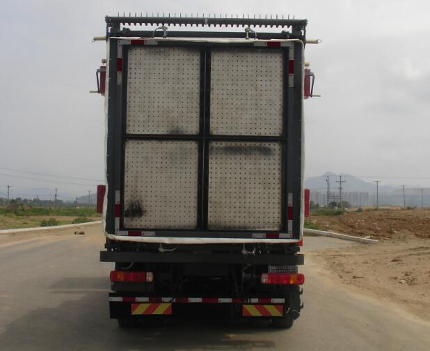 用于路面修补,主要装置为沥青混合料加热搅拌装置和路面加热装置,选装热沥青箱,选装后整备质量为17500kg;选装另一种加热器,选装前面罩,侧防护装置与车架螺栓连接,材质为Q235;后部防护装置由专用装置代替,离地高度为310mm,ABS型号为4460046300,生产企业为威伯科汽车控制系统(中国)有限公司. |