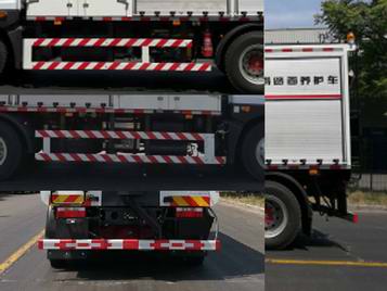 车辆侧、后防护材质:Q235A,连接方式:螺栓连接,后防护尺寸2460*50*120,离地高度440,;ABS系统生产厂家,型号 :焦作博瑞克控制技术有限公司,J ABS.车辆后侧选装两个液压油缸,喷洒装置,右侧选装侧门样式、发电机位置及后部回收料斗。 |