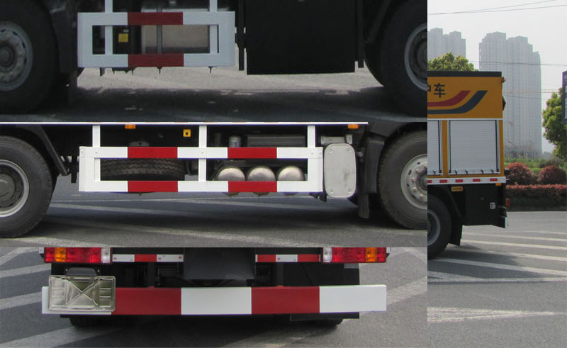 该车仅选用轴距4600+1350mm;该车专用装置为混合料保温箱,沥青罐.专用功能:道路施工、道路养护作业;侧、后防护装置材料为Q235A,连接方式为螺栓连接;后防护装置的断面尺寸:180?0mm,离地高度480mm;ABS系列型号:4460046300,厂家:威伯科汽车控制系统(中国)有限公司.该车可选装高顶驾驶室,选装导流罩,选装导风板,选装遮阳罩,选装后风窗,选装5253A型上装. |