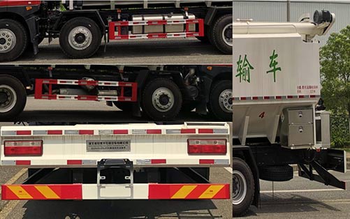 | 1、运输介质:膨化及颗粒饲料,密度为500千克/立方米;2、罐体有效容积28立方米;3、罐体为异型罐,外形尺寸(mm):长7000,宽2520,高2220;4、罐体后侧面喷涂介质名称“膨化及颗粒饲料”以及有效容积;5、仅选用1850+4000,1850+4950轴距;6、侧防护材料材质为铝合金,连接方式为螺栓连接;7、后防护材质为Q235A钢,离地高度280mm,截面尺寸(mm):120X60,连接方式为螺栓连接;8、该车安装具有卫星定位功能的行驶记录仪;9、ABS的型号及生产厂家:JABS/焦作博瑞克控制技术有限公司;10、仅选用ISD245 50发动机,最大净功率174kw,对应的油耗值均为32.4L/100km;11、卸料方式:螺旋输送绞龙卸料;该车装备电机及液压动力装置(含举升油缸),绞龙输送装置,散装饲料罐等专用装置;12、随底盘选装仅外饰件不同的同系列驾驶室,选装气喇叭;13、该车型可选装ETC车载装置 |