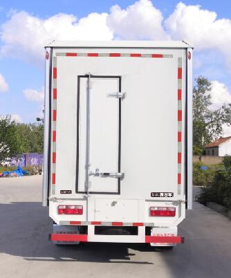 ABS型号:1.CM4XL-4S/4M;2.VIE ABS-II;ABS生产企业:1.广州瑞立科密汽车电子股份有限公司,2.浙江万安科技股份有限公司;发动机净功率值:WP3NQ160E61(114kw);选装描述:选装不带导流罩.选装新结构导流罩.选装改侧窗的驾驶室.选装新前脸驾驶室.选装不同的侧门结构.选装不同的后部灯具.该车型可选装ETC车载装置;所用材料材质、连接方式以及后部防护装置的主要尺寸参数(断面尺寸和离地高度):侧防护装置的材质为R13钢,连接方式为螺栓连接,后下部防护装置的材质为Q235B,连接方式为焊接,后部防护离地高度420mm,断面尺寸为100?0mm.;车厢顶部封闭且不可开启;专用功能及装置:折叠式平台,支腿,顶棚,作业时顶板部分(或全部)可向上展开(或举升),侧板可向下展开平铺形成舞台地板;该车是进行舞台文艺表演的专用车辆; |