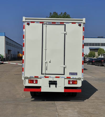 随底盘选装驾驶室。车厢顶棚封闭,并采用衍架结构,可升降,车厢两侧板可展开,与顶棚形成整车舞台顶棚;活动舞台板可折叠于车厢内,通过展开装置展后与固定舞台台面形成整车舞台台面;底盘大梁部分设有支撑装置。该车作为流动演出的、可展开成为舞台。侧防护采用Q235,螺栓连接。后防护采用Q235,焊接连接。后防护截面高度尺寸100mm,截面宽度尺寸50mm,下边缘离地高度450mm;ABS系统型号为XH-KQ4S4M-E01,生产企业为广州市西合汽车电子装备有限公司;型号为CM4XL-4S/4M,生产企业为广州瑞立科密汽车电子股份有限公司;型号为VIE ABS-Ⅱ,生产企业为浙江万安科技股份有限公司。车辆长/轴距/前悬/后悬对应关系为:5995/3280/1160/1555,5995/3280/1180/1535,5995/3360/1160/1475,5995/3360/1180/1455.选装外观。 |
