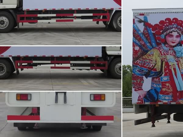 1.整车长/轴距/后悬对应(mm)关系为:10550/6300/2905,9990/5700/2945,9200/5100/2755,8995/5100/2550,8600/5100/2155,8400/5100/1955.2.导流罩为选装件,车厢顶棚封闭,并采用衍架结构,可升降,车厢两侧板可展开,与顶棚形成整车舞台顶棚;活动舞台板可折叠于车厢内,通过展开装置展后与固定舞台台面形成整车舞台台面;3.该车是进行舞台文艺表演的专用车辆.专用装置:顶棚,侧翼,支腿,木地板,护栏,爬梯,电器接口4.ABS型号/企业:ABS-E 4S/4M /威伯科汽车控制系统(中国)有限公司;CM4XL-4S/4M/广州瑞立科密汽车电子股份有限公司。5.侧防护和后防护装置材料:Q235材质,焊接,后防护断面尺寸(宽赘?(mm)50?50,离地高500mm.6.选装后部单开门及安装位置,侧翼可选装单边开启,选装LED灯箱屏 |