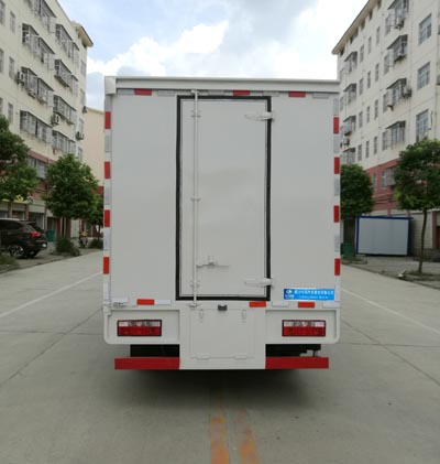 该车是进行舞台文艺表演的专用车辆;专用装置:厢体,折叠式平台,支腿.随底盘选装驾驶室.选装抽拉式扩容箱体和后门.车厢顶棚封闭,并采用衍架结构,可升降,车厢两侧板可展开,与顶棚形成整车舞台顶棚;活动舞台板可折叠于车厢内,通过展开装置展后与固定舞台台面形成整车舞台台面;底盘大梁部分设有支撑装置。侧防护和后防护装置材料:Q235A碳钢,焊接,后防护断面尺寸(宽赘?(mm)50?00,离地高400mm。ABS厂家及型号:襄阳东风隆诚机械有限责任公司/ABS/ASR-24V-4S/4M. |