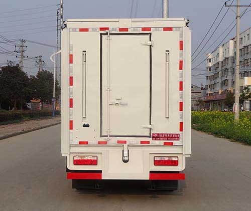 随底盘选装驾驶室,导流罩为选装件,选装后部门结构样式,选,选装裙边结构。车厢顶棚封闭,并采用衍架结构,可升降,车厢两侧板可展开,与顶棚形成整车舞台顶棚;活动舞台板可折叠于车厢内,通过展开装置展后与固定舞台台面形成整车舞台台面;底盘大梁部分设有支撑装置。ABS厂家及型号:襄阳东风隆诚机械有限责任公司/ABS/ASR-24V-4S/4M;侧防护采用冷弯型钢/Q235-A,焊接连接,后防护采用冷弯型钢/Q235-A,焊接连接,后防护截面高度尺寸120mm, 截面宽度尺寸50mm,下边缘离地高度350mm。该车作为流动演出的、可展开成为舞台。 |
