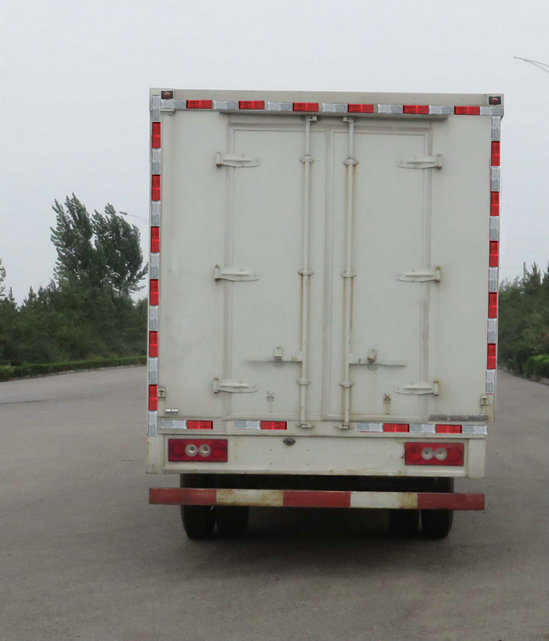 1,货厢顶部封闭,不可开启.专用装置:折叠式平台,支腿,顶棚,作业时顶板部分(或全部)可向上展开(或举升),侧板可向下展开平铺形成舞台地板;2,可选装取消导流罩,可选装排半驾驶室型式,可选装前视镜,选装货箱风格.3,侧面防护装置材料为冷板B-2.0/20,后下部防护装置材料为管Q235A,均为螺栓连接,后下防护装置截面尺寸100mm?0mm,离地高度480mm.4,ABS型号:ABS-E;生产企业:威伯科汽车控制系统(中国)有限公司.可选装货箱风格,可选装液压尾板,液压尾板质量350kg,收起时水平长度为280mm. |
