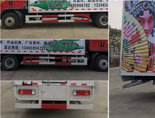 随底盘选装驾驶室。车厢顶棚封闭,并采用衍架结构,可升降,车厢两侧板可展开,与顶棚形成整车舞台顶棚;活动舞台板可折叠于车厢内,通过展开装置展后与固定舞台台面形成整车舞台台面;底盘大梁部分设有支撑装置。该车是进行舞台文艺表演的专用车辆。侧防护采用冷弯型钢/Q235-B,焊接连接,后防护采用冷弯型钢/Q235-B,焊接连接,后防护截面高度尺寸100mm,截面宽度尺寸50mm,下边缘离地高度450mm。ABS生产厂家/型号:浙江万安科技股份有限公司/VIE ABS-II。 |