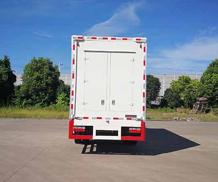 1.该车是进行舞台表演、展示的专用车辆,专用装置:顶棚,侧翼,支腿,木地板,护栏,爬梯,电器接口;2.选装前面罩,前保险杠,前组合灯具,前雾灯,排半驾驶室;选装两侧贴纸;选装导流罩;3.侧防护材质Q235,槽型结构,螺栓连接;后下部防护材质Q235,与车架连接方式为焊接,断面尺寸和离地高度分别为100mmX100mm和475mm;4.ABS型号/厂家:ABS型号:ABS/ASR-24V-4S/4M,厂家:襄阳东风隆诚机械有限责任公司;5.选装裙边结构,后下部裙边离地高度480mm,选装不同高度箱体。 |