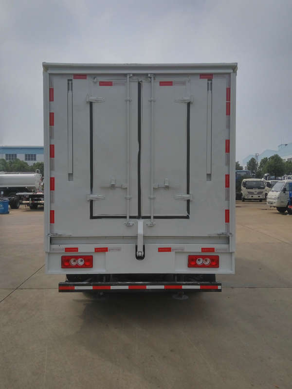 1.货厢顶部封闭,不可开启.专用装置:折叠式平台,支腿,顶棚,作业时顶板部分(或全部)可向上展开(或举升),侧板可向下展开平铺形成舞台地板;该车是进行舞台文艺表演的专用车辆;随底盘选装排半驾驶室;可选装前下视镜;2.侧防护材料为:冷板B-2.0,后防护栏材料为:矩型管20-D-2-100x50,联结方式均为螺栓联结,位置不可调整,后防护断面尺寸为100mm?0mm,离地高度480mm.3.ABS型号为ABS-E/YF8,生产企业:威伯科汽车控制系统(中国)有限公司/武汉元丰汽车电控系统有限公司;ABS系统型号:ABS-VI.E;生产企业:广州瑞立科密汽车电子股份有限公司;选装后视镜型式,选装不同的货箱风格. |