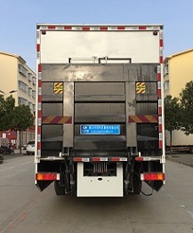 该车是进行舞台文艺表演的专用车辆;专用装置:厢体,折叠式平台,支腿.选装车厢两侧LED屏幕结构,选装侧开门结构,选装不带液压围板后开门结构时后防护为裙边结构,选装箱体外观贴画。车厢顶棚封闭,并采用衍架结构,可升降,车厢两侧板可展开,与顶棚形成整车舞台顶棚;活动舞台板可折叠于车厢内,通过展开装置展后与固定舞台台面形成整车舞台台面。后部液压尾板收起状态长度是280mm。整车长/轴距/后悬对应关系为(mm):12180/1850+5450/3380;12180/1950+5350/3380;12180/2050+5250/3380;11800/1850+4950/3500;侧,后防护采用裙板结构代替,后防护离地高500mm.ABS型号和厂家:4460046440,威伯科汽车控制系统(中国)有限公司.随底盘选装驾驶室。 |