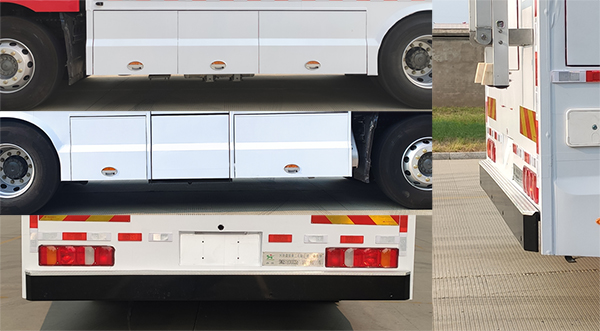 ABS型号:4461352410;ABS生产企业:威伯科(上海)管理有限公司;选装描述:选装ABS系统型号为4460046300,生产企业为威伯科(上海)管理有限公司;所用材料材质、连接方式以及后部防护装置的主要尺寸参数(断面尺寸和离地高度):侧防护装置为裙边结构,材料材质为Q235B;后下防护钢板折弯成型,材质Q345B,截面尺寸为180?0(mm),下缘离地高度为475mm;车厢顶部封闭且不可开启;专用功能及装置:该车装备有LED宣传屏,音柱,硬盘录像一体机等专用装置,主要用于各行业图文、视频宣传等; |