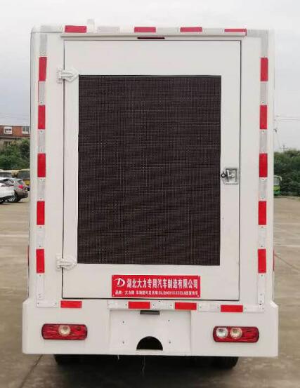 ABS型号:YF8;ABS生产企业:武汉元丰汽车电控系统有限公司;发动机净功率值:LJ4A15Q6净功率为79kw;选装部件名称及其相关描述:随底盘选装驾驶室及轮辋.左右后三侧均可选装LED屏,或LED升降屏,滚轴灯箱,条屏,活动舞台;后部选装百叶窗,后开门;前部选装通风口或LED条屏;所用材料材质、连接方式以及后部防护装置的主要尺寸参数(断面尺寸和离地高度):防护为整体裙边结构,后裙边下缘离地高度为450mm;车厢顶部封闭且不可开启;专用功能及装置描述:该车是用于广告宣传和科普宣传的专用车辆; |