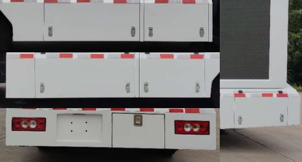 ABS型号:ABS-VI.E,ABS-E;ABS生产企业:广州瑞立科密汽车电子股份有限公司,威伯科汽车控制系统(中国)有限公司;发动机净功率值:F2.8NS6B131/93kw;选装描述:仅用底盘F2.8NS6B131发动机,车箱左右两侧均可选装白板结构、扩容箱、LED屏加滚轴灯箱或滚轴灯箱结构,并选装升降装置.车箱尾部厢门可选装侧开或上翻结构,车箱后部可选装LED屏,滚轴灯箱或白板结构.整车专用装置供电可选装发电机供电;侧后防护情况:两侧及后下部为裙边式围板防护替代侧后防护的功能,材质为Q235A.左右两侧防护的离地高度为360mm,后防护的离地高为410mm;车厢顶部封闭且不可开启;专用功能及装置:该车配有LED屏,并可选装滚轴灯箱、扩容箱或白板,专门用于广告宣传; |
