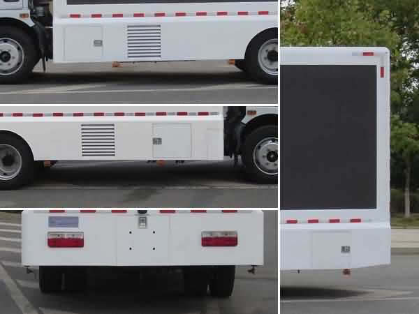 随底盘选装驾驶室,该车主要专用装置有箱体,LED显示屏,是用于广告宣传和科普宣传的专用车辆;ABS型号/厂家:ABS型号:ABS/ASR-24V-4S/4M,厂家:襄阳东风隆诚机械有限责任公司,侧面防护装置及后下部防护装置采用裙板结构代替,后部裙板离地高为480mm. |