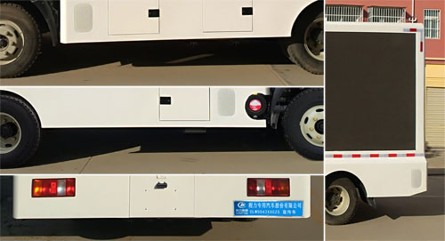 该车是用于广告宣传的专用车辆,专用装置为LED显示屏;随底盘选装驾驶室;侧后防护由车身结构替代,后防护离地高为480mm;ABS系统控制器型号/生产企业为:CM3XL-4S/3M(4SF)/广州瑞立科密汽车电子股份有限公司. |
