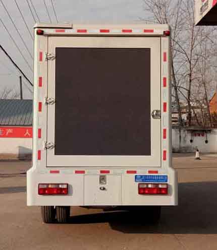 该车是用于广告宣传的专用车辆.专用装置为LED显示屏.侧后防护采用裙板结构代替,后部裙板离地高为500mm.ABS防抱死制动系统生产厂家/型号:1.广州瑞立科密汽车电子股份有限公司/CM4XL-4S/4M;2.浙江万安科技股份有限公司/VIE ABS-II.随底盘选装驾驶室,两侧均可选装:LED屏或侧展,LED升降或者不带升降屏,滚轴灯箱,条屏;选装LED条屏,亦可选装单开或双开门,或者封闭;选装尾部踏板;后部可选装LED屏或灯箱或后展,通风口. |