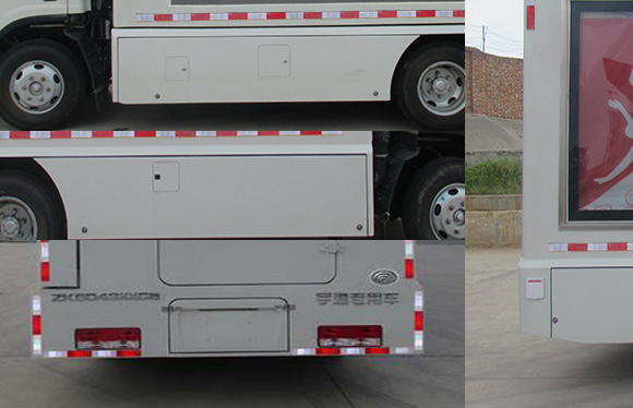 1.该车装配LED屏,用于广告宣传和科普宣传;2.两侧均可选装LED屏和卷轴灯箱、灯箱式广告屏+上部LED屏,后部选装LED显示屏;可选装空调,可取消LED屏两侧音柱;右侧围可选装开门;左侧可取消LED屏举升状态;后开门可选装左侧开启状态;可选装后部牌照位置;可选装前置功放箱;左右两侧可选装不同形式的防水音柱;车辆左侧可选装宣传舱门;3.安装顶置防水音柱时对应整车高度为3300mm,安装不同顶置市电空调对应高度为3380mm或3480mm;4.裙边加宽状态时对应车宽为2240mm,左右侧裙板可选装局部向前开门;5.可随底盘选装小轮罩,选装无英文LOGO前围;6.ABS系统控制方式是4S/4M,ABS系统控制器型号:CM4XL-4S/4M,ABS系统控制器生产企业:广州科密汽车电子控制技术股份有限公司;7.仅选用底盘的4B2-115C50发动机,发动机最大净功率分别为:81kW(4B2-115C50);8.裙边式侧后围结构代替侧后防护,侧后防护材质为Q235-B,连接方式:焊接,侧防护离地高300mm,后防护离地高460mm; |