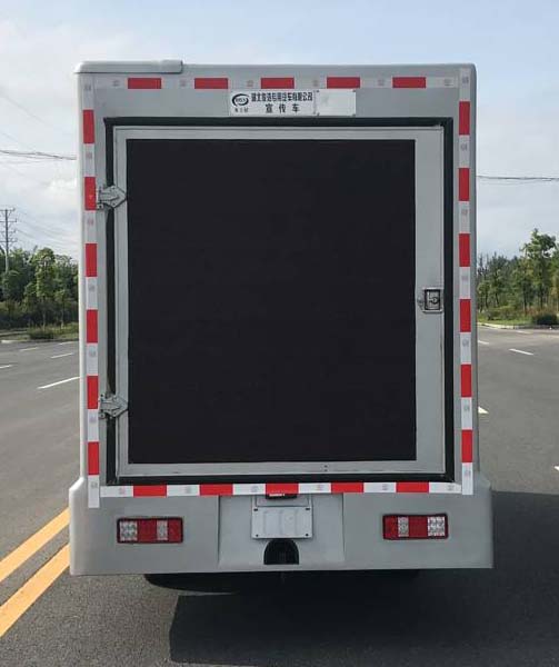 该车是用于科普广告宣传的专用车辆,专用装置为LED屏;选装天窗时整车高度为2760mm;不选装天窗高度为2680mm;两侧选装斜坡包边时整车宽度为1930mm;两侧不选装斜坡包边时整车宽度为1830mm;车厢侧面可选装有可升降装置的LED全彩屏;车辆右侧上方选装LED单色条屏,左侧LED屏外选装防护玻璃,下方选装滚轴系统,后部可选装不同开门形式;可选装通风口;选装棱角包边厢体或圆角包边厢体.随底盘选装新款前面罩,前部大灯及保险杠,选装新款倒车镜,带OBD.整车长度/轴距/后悬/(mm)对应关系:5410/3050/1700;5720/3360/1700.ABS型号:CM4YL,YF8, ABS生产厂家:广州瑞立科密汽车电子股份有限公司,武汉元丰汽车电控系统有限公司. |