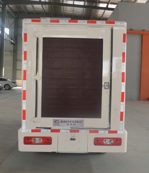 1.该车是用于科普广告宣传的专用车辆,专用装置为LED屏;2.车厢侧面可选装有可升降装置的LED全彩屏,本车工作时侧面可打开,配以专用宣传设备,形成宣传平台;车辆右侧上方选装LED单色条屏,下方选装外钢化玻璃滚轴系统。后部可选装不同开门形式,可选装通风口;选装棱角包边厢体或圆角包边厢体;3.不选装天窗时整车高度为2520mm,选装天窗时整车高度为2600mm;两侧不选装斜坡包边时整车宽度为1710mm,5;随底盘选装前雾灯;4.ABS系统生产厂家为武汉元丰汽车电控系统有限公司,对应的型号为YF9。 |
